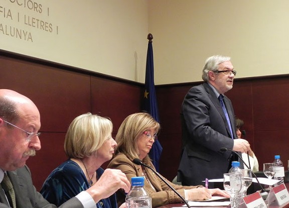 Moment del discurs com a col·legiat d’honor del Col·legi de Doctors i Llicenciats en Filosofia i Lletres i en Ciències de Catalunya