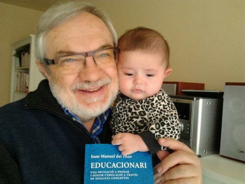 L'Emma, a qui està dedicat el llibre Educacionari, en rep un exemplar del seu avi i autor.